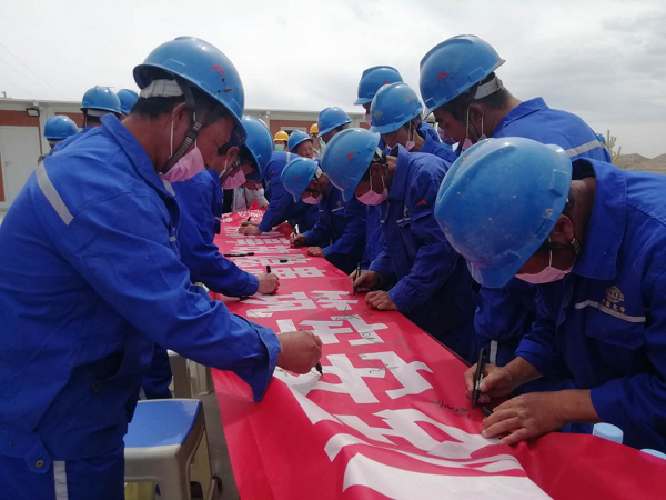 隨后,參加此次啟動(dòng)儀式的全體人員在印有本次活動(dòng)主題“消除隱患事故,筑牢安全防線”的條幅了鄭重簽名,做出安全承諾。