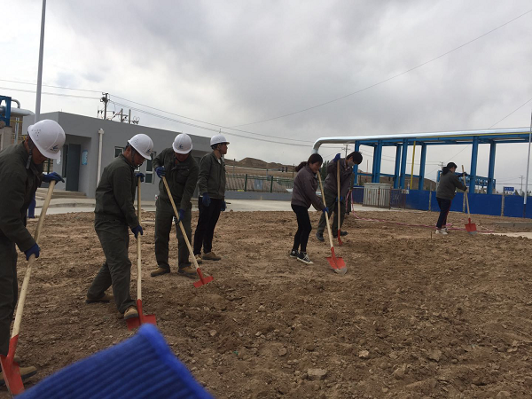 為做好該工作,熱源廠提前謀劃,搶抓時節(jié),協(xié)調(diào)各方資源,挖溝打埂、拉車換土、清除雜物、栽種苗木、種花種草,全面鋪開廠區(qū)綠化美化工作,到處呈現(xiàn)一片熱火朝天的繁忙景象?;顒又?,熱源廠全體人員團(tuán)結(jié)一致,相互配合,鏟除雜草。一起翻土整地、起壟、撒花籽、培土,在辦公樓前后、脫鹽水廠房及煤棚等多處種上了三葉草、白波、金雞、紫波等花種,用自己的實際行動,為營造優(yōu)美的生活環(huán)境貢獻(xiàn)一份力量。